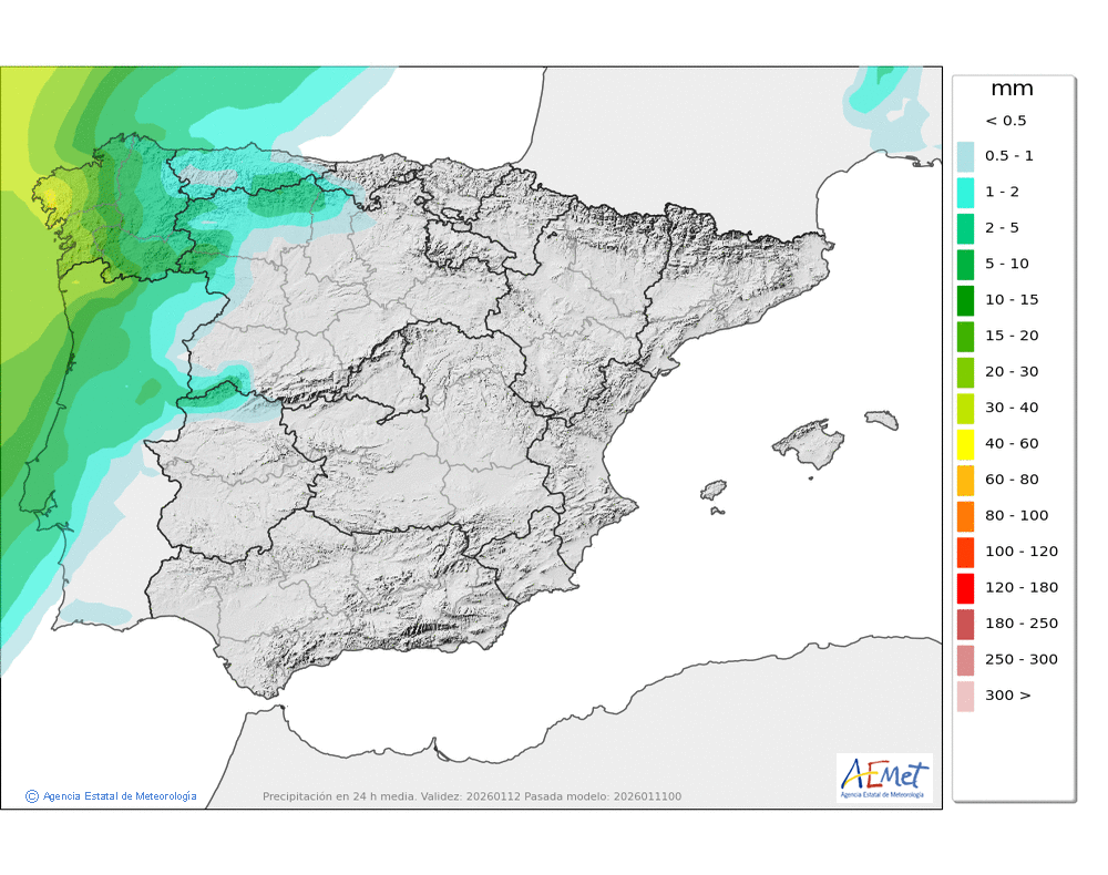 Elaboración de la predicción por la AEMET y el servicio de alerta meteorológica en Europa. (última actualización: 2026-01-11T06:55:07)