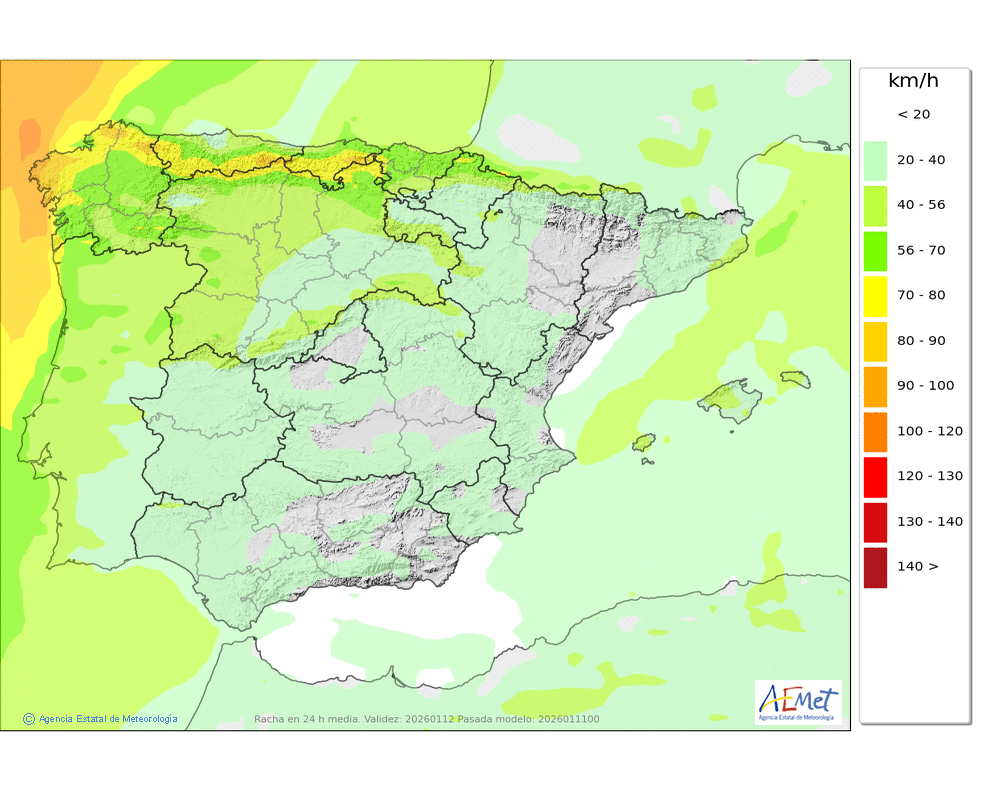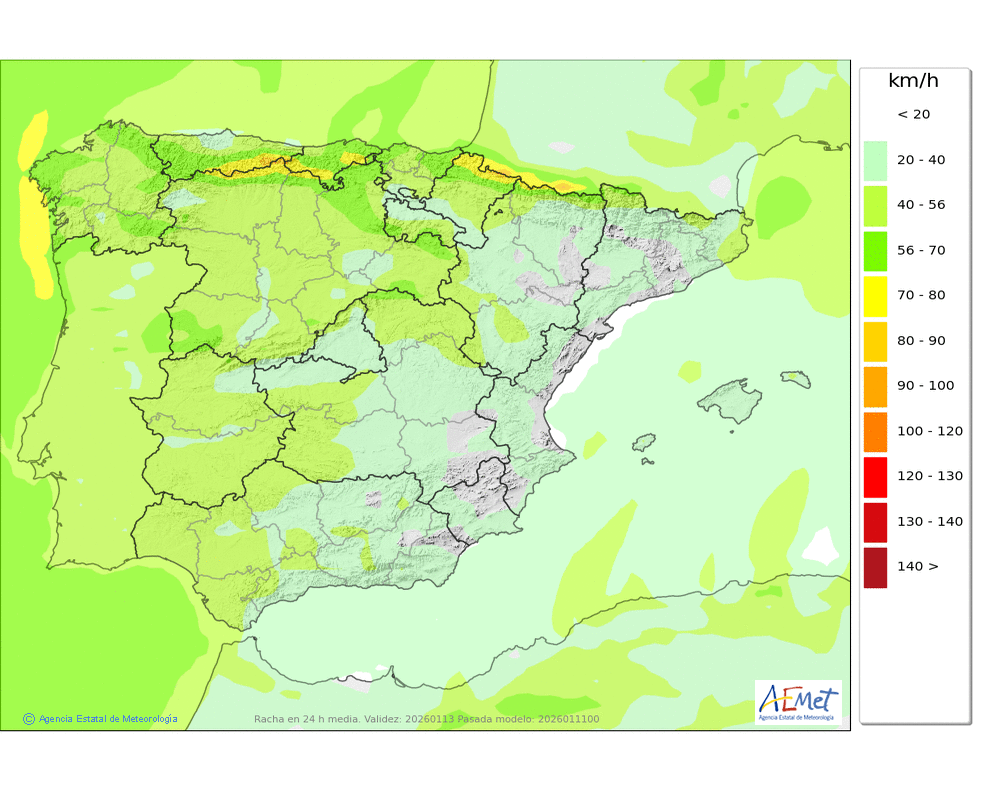 | Racha máxima del viento (km/h) | |||||||||||||||||||||||
