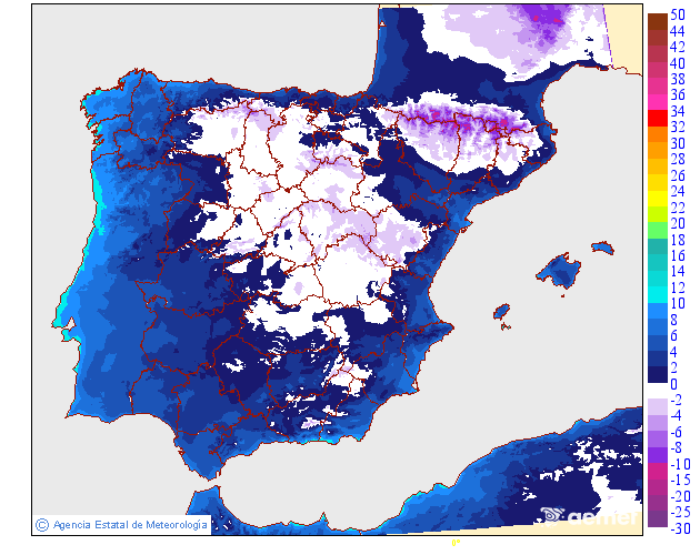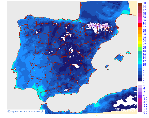 | -3ºC | -2ºC | 0ºC | 0ºC | 0ºC | 0ºC | 1ºC | 2ºC | 3ºC | 5ºC | 6ºC | 8ºC | 8ºC | 9ºC | 8ºC | 7ºC | 6ºC | 4ºC | 4ºC | 1ºC | 0ºC | -1ºC | ºC | |