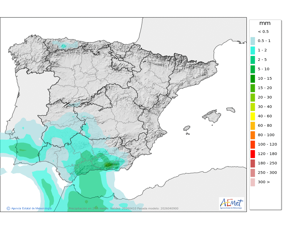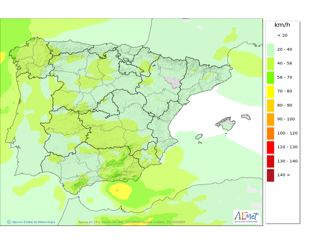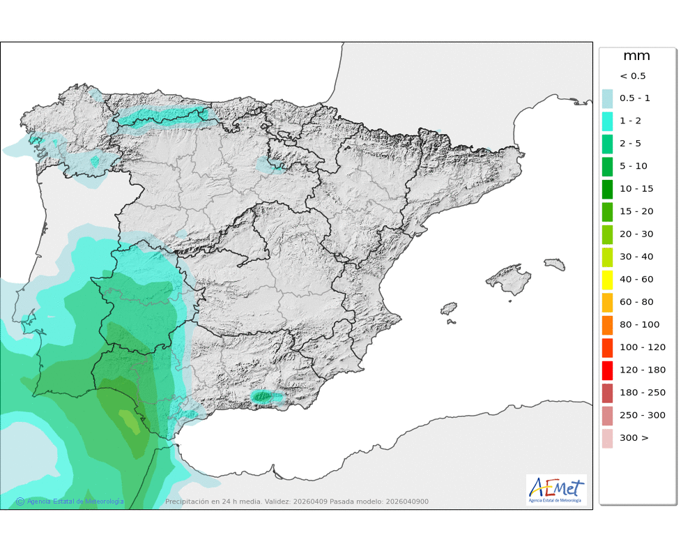 Elaboración de la predicción por la AEMET y el servicio de alerta meteorológica en Europa. (última actualización: 2026-04-09T08:57:12)