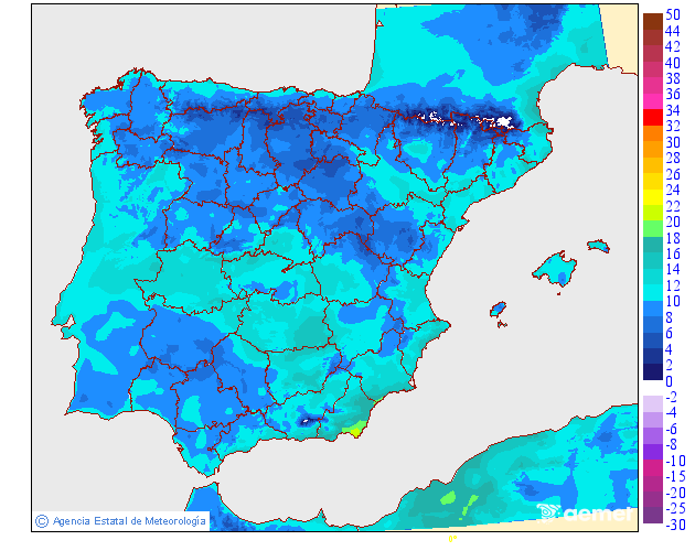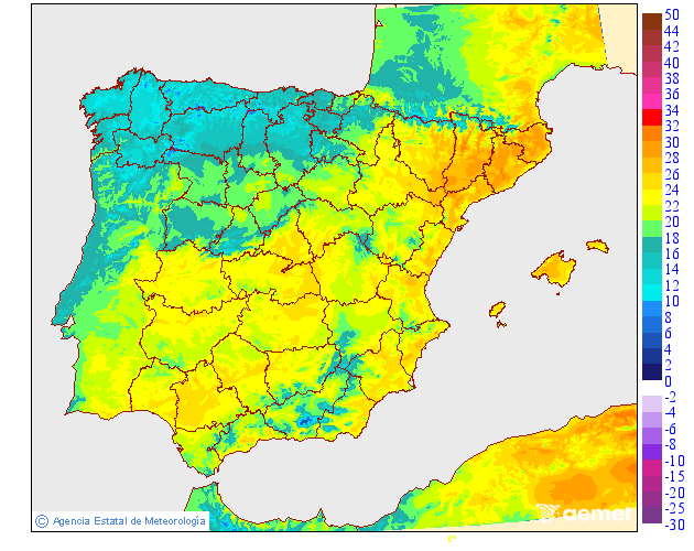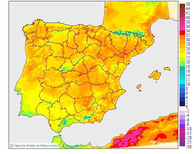 | 16ºC | 15ºC | 13ºC | 13ºC | 12ºC | 12ºC | 11ºC | 11ºC | 10ºC | 13ºC | 15ºC | 18ºC | 21ºC | 24ºC | 26ºC | 28ºC | 29ºC | 30ºC | 29ºC | 28ºC | 26ºC | 24ºC | 21ºC | 18ºC |