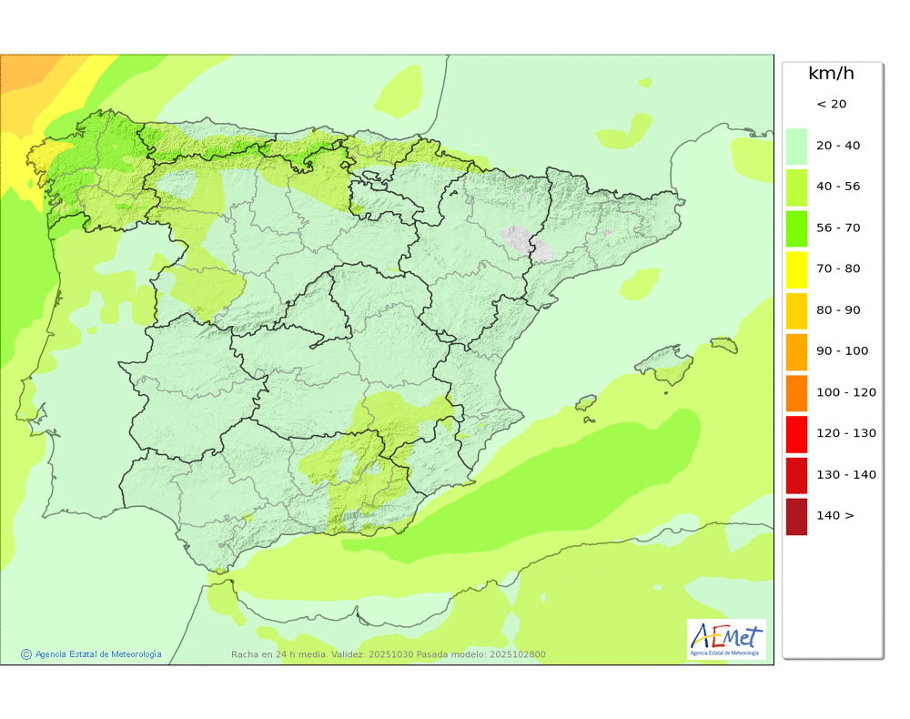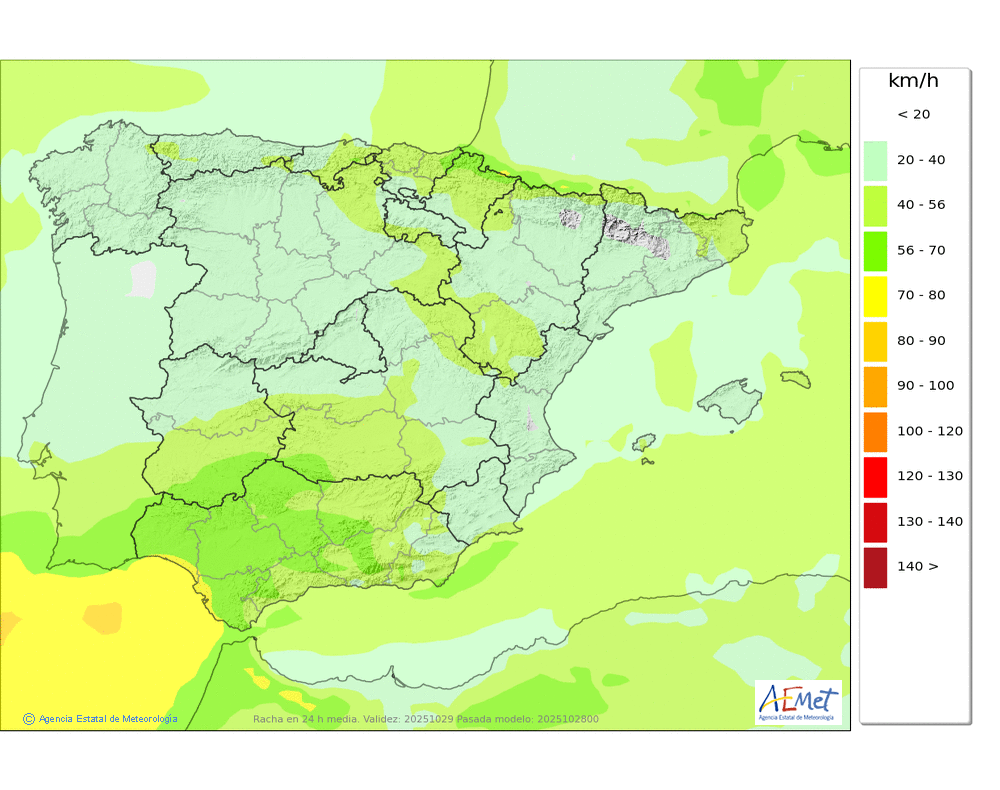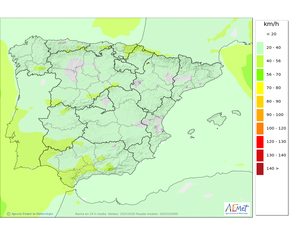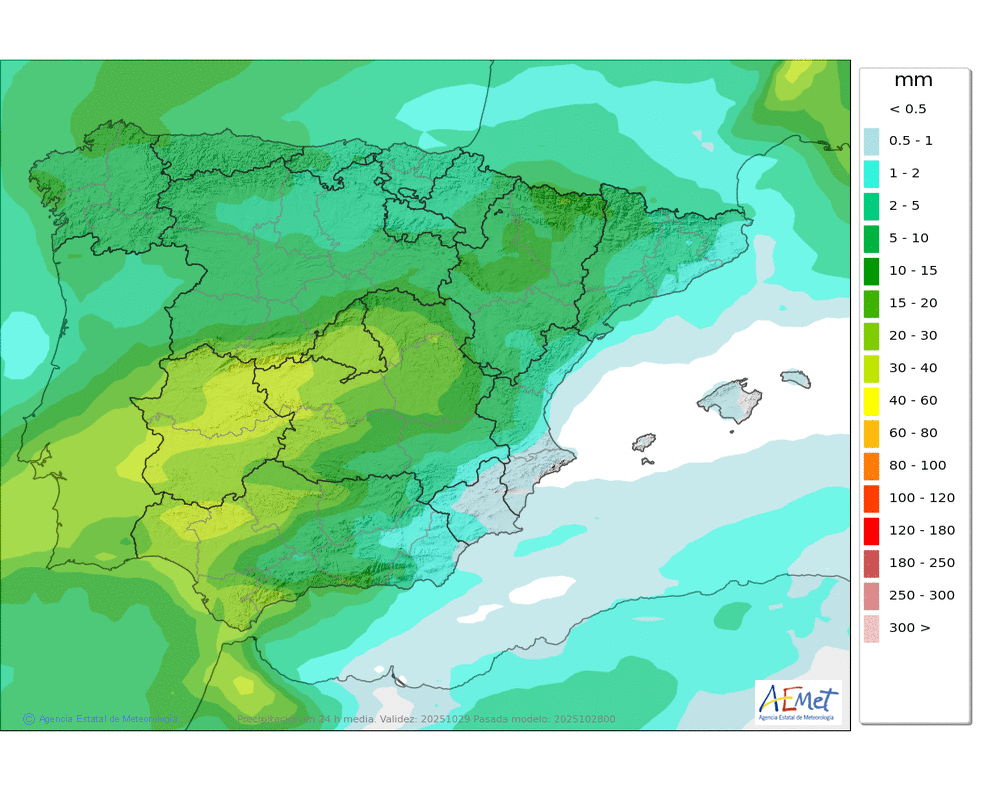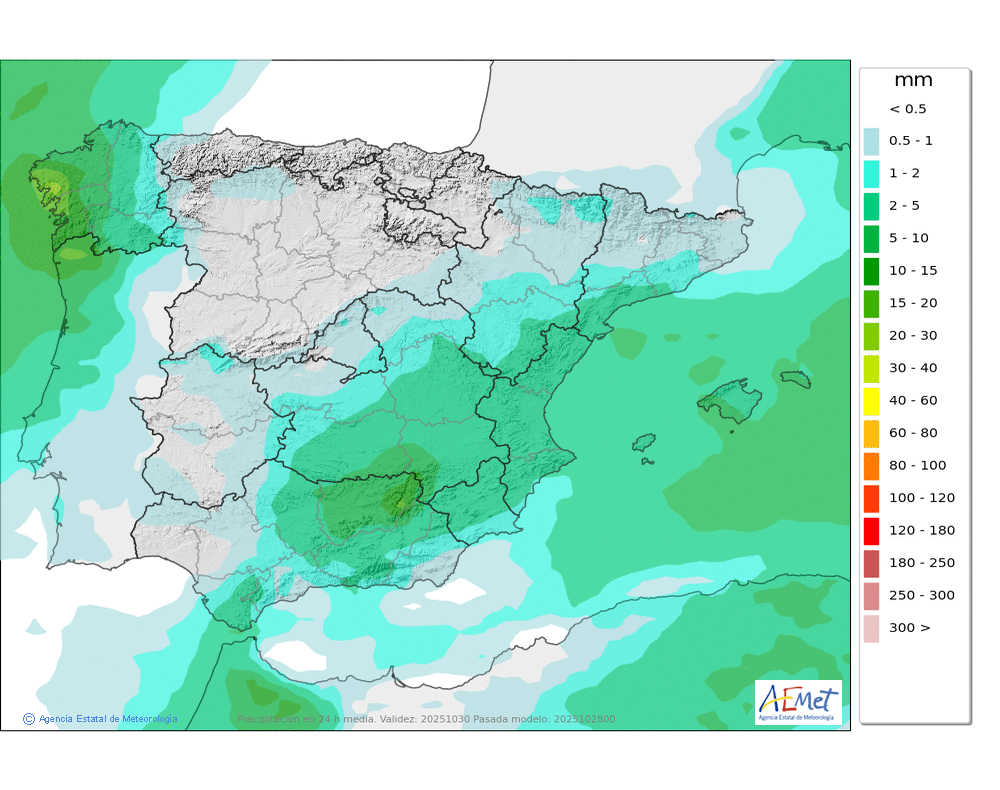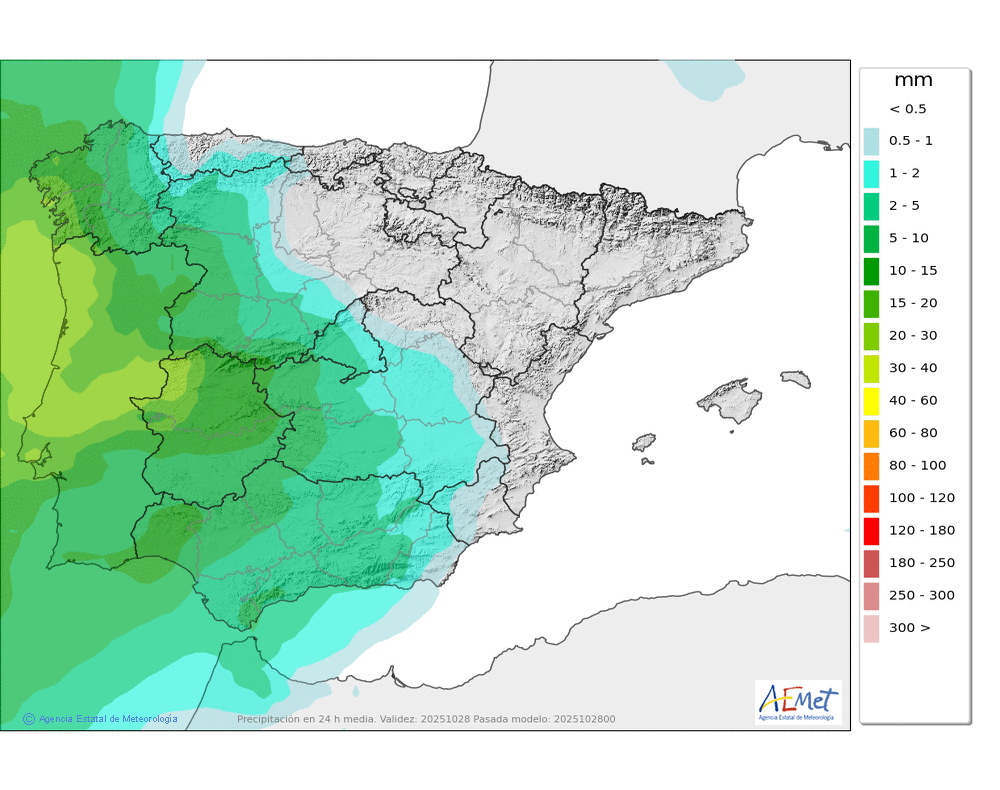 Elaboración de la predicción por la AEMET y el servicio de alerta meteorológica en Europa. (última actualización: 2025-10-28T07:44:07)